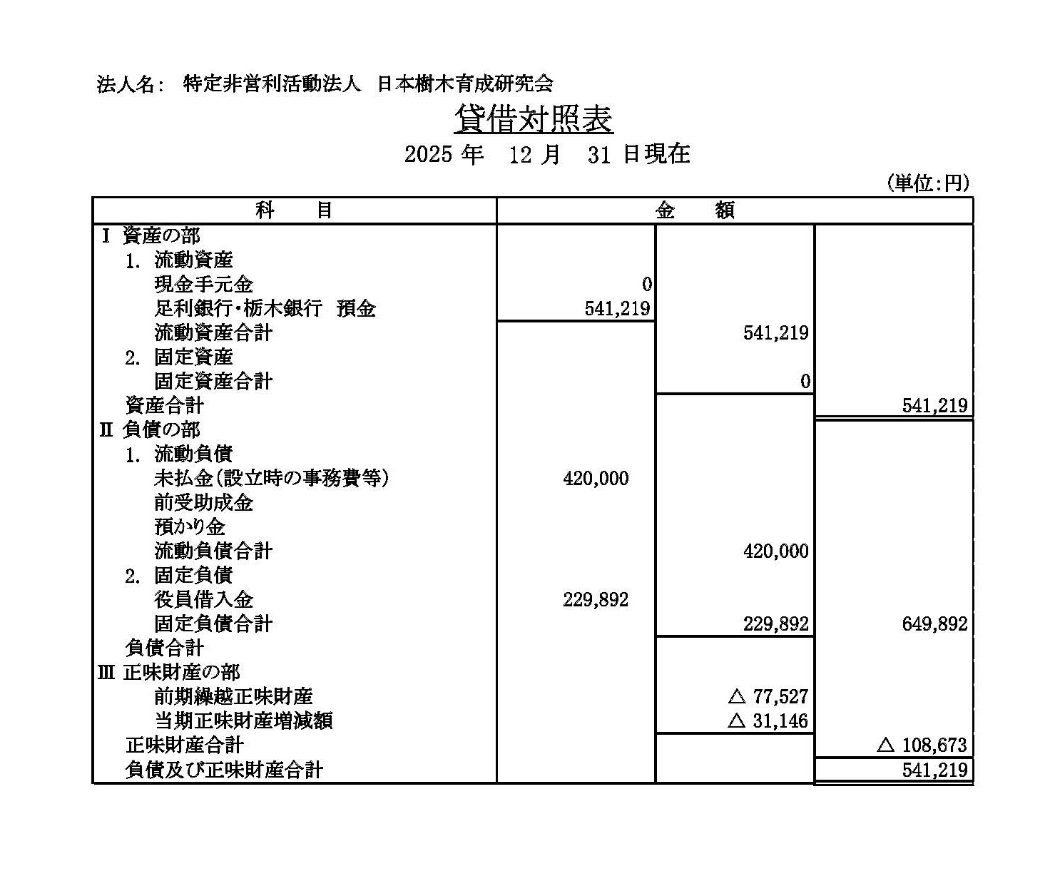 令和7年度 貸借対照表 (更新2026年3月27日)